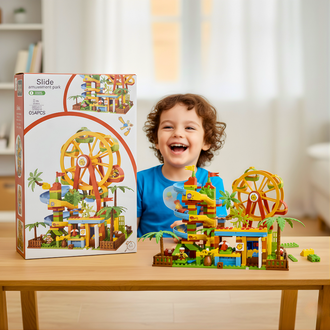 Šareni zabavni park sa toboganom i panoramskim točkom – set kockica